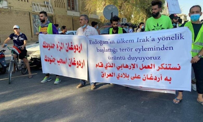 بالصور…متظاهرو تشرين يستنكرون التدخل العسكري التركي في الأراضي العراقية