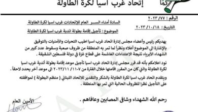 بغداد 24 – لبنان متابعة – بغداد 24 قرر مجلس ادارة اتحاد غرب اسيا تأجيل موعد إقامة بطولة أندية غرب…