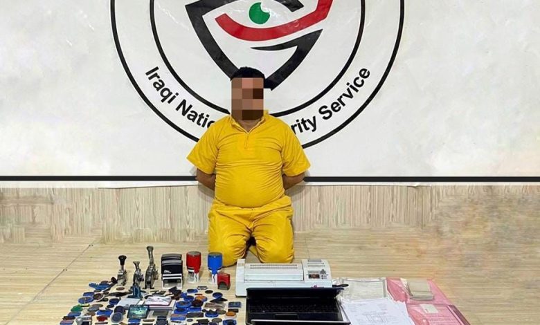أعلن جهاز الامن الوطني, اليوم الأحد 26 ديسمبر 2021, اعتقال احد اكبر مزوري الوثائق في محافظة البصرة.