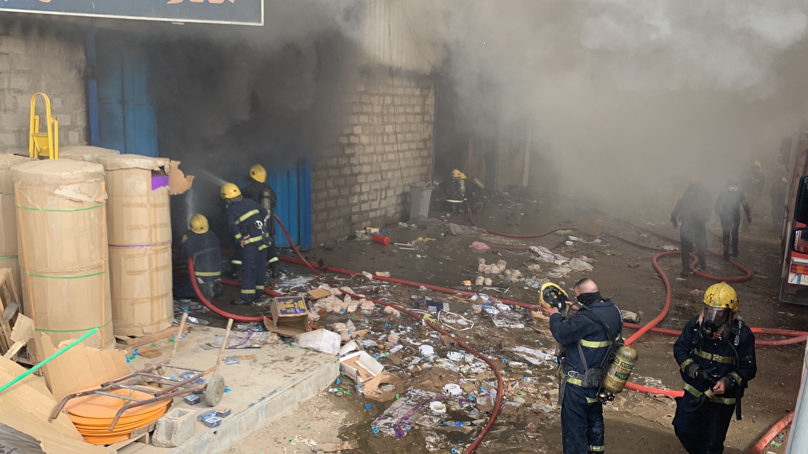 وأضافت, ان المديرية بعدد من فرق الاطفاء الإختصاصية وأسندتها بالعجلات الحوضية بغية احكام السيطرة على النيران المشتعلة داخل المواد البلاستيكية والاصباغ, مُبينة انها طوقت الحادث من الجهات الاربعة وحالت دون توسع الحريق إلى المخازن التجارية المجاورة.