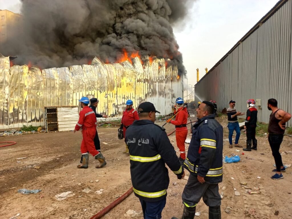 وأضافت, ان الدفاع المدني استنفر وزج بـ خمسة عشرة عجلة اطفاء بكامل طواقمها باسناد الجهد الآلي الثقيل من شفلات من اجل السيطرة وإخماد حادث الحريق,مُبينة انه لم يتم تسجيل إصابات بشرية او تأثر الشقق في المباني السكنية مع انقاذ مرآب للسيارات قريب جدا من موقع الحادث.