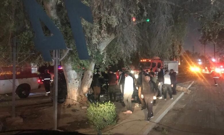 إنقاذ سائق بعد اصطدامه بأحدى الأشجار وسط بغداد