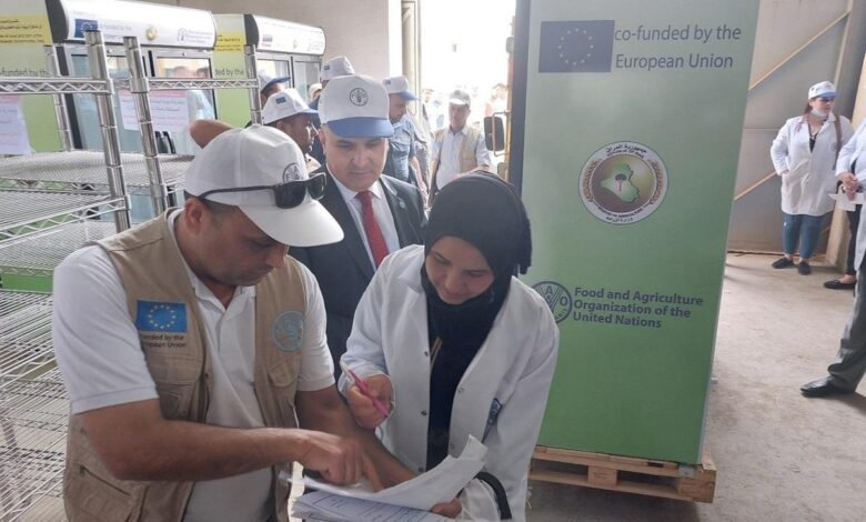 أقامت منظمة الأغذية والزراعة للأمم المتحده ” الفاو ” ، وبرعاية معالي وزير الزراعة المهندس محمد كريم الخفاجي اليوم احتفالية توزيع معدات لتسويق المنتجات الزراعيه في مقر شعبة زراعة بعشيقة ضمن مشروع دعم مشروع دعم سبل المعيشة للمزارعين العائدين في المناطق الريفية وشبه الحضرية في محافظة نينوى والممول من الاتحــاد الاوربي والمنفذ من قبل الفاو بالتعاون الوثيق مع وزارة الزراعة / مديرية زراعة نينوى.