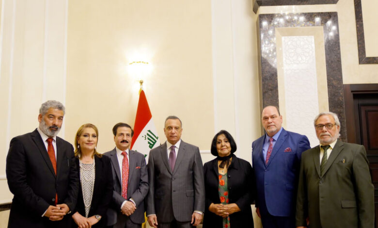 وأطلع, الكاظمي بحسب البيان على “أوضاع الفنانين العراقيين وأحوالهم، وأهمّ مطالبهم، ووعد بمتابعة ما عرضوه من احتياجات ومقترحات تسهم في توفير بيئة تنموية للفن وتعمل على إيصال رسالته السامية في المجتمع العراقي”.