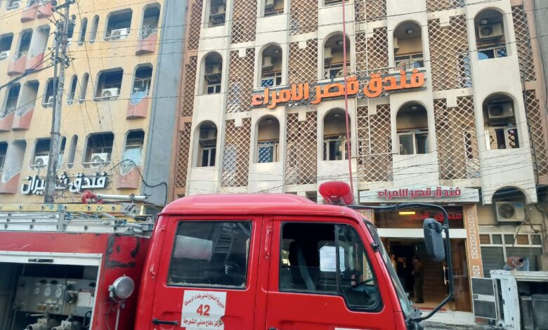 بالصور.. الدفاع المدني يخمد حريقًا بفندق وسط بغداد