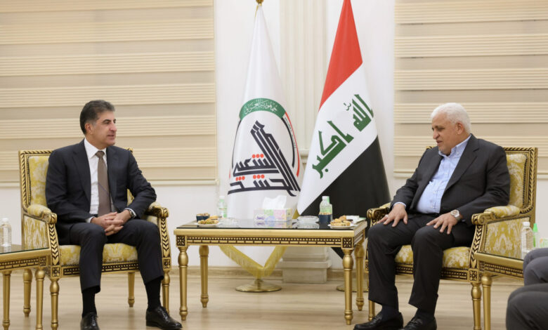 اتفق رئيس إقليم كوردستان نيجيرفان بارزاني ورئيس هيئة الحشد الشعبي فالح الفياض، اليوم الأحد، على أن هجمات الطائرات المسيرة على البيشمركة والاقليم يضر بالسلام واستقرار العراق.