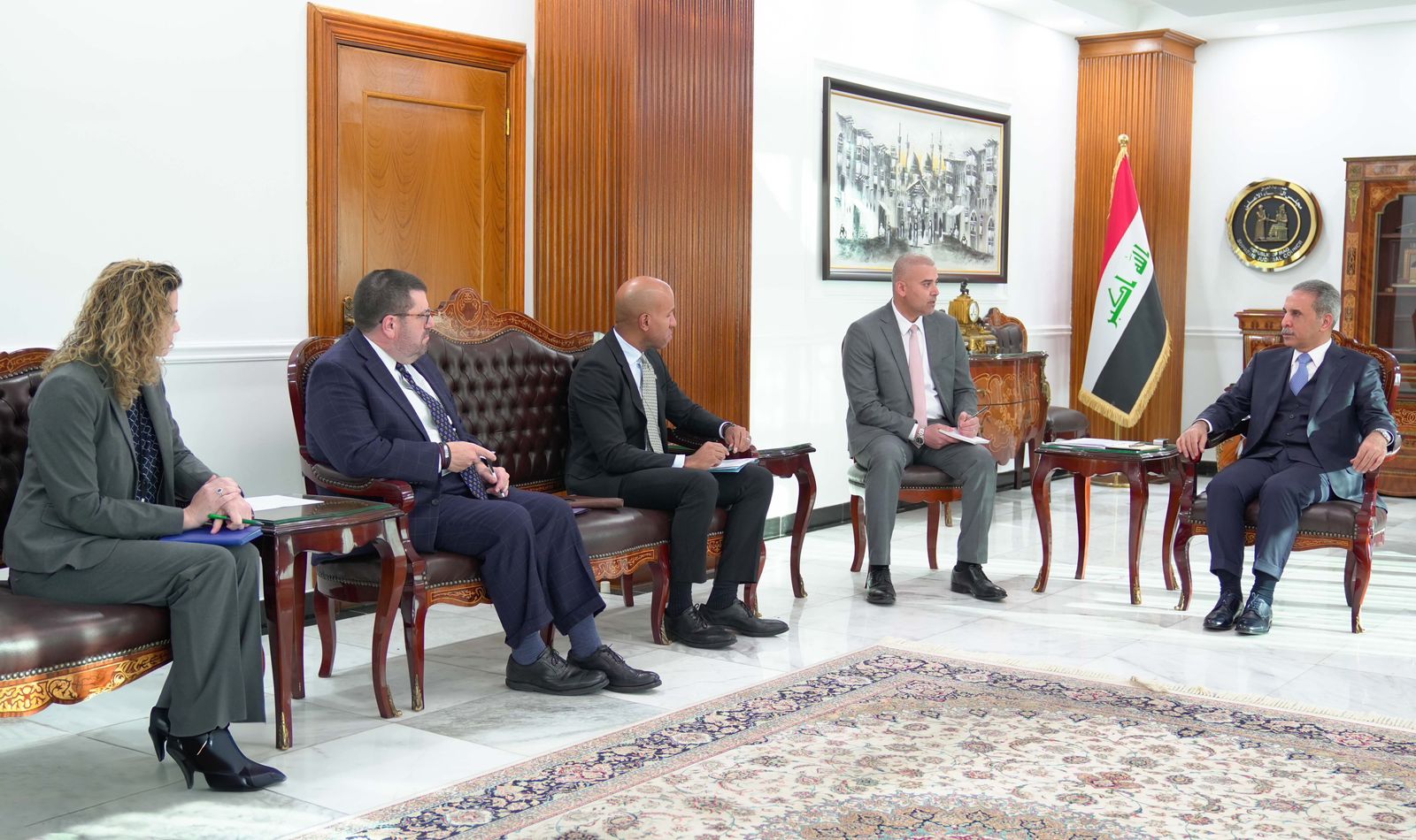 واوضح ان “الطرفين ناقشا الإجراءات القانونية والعقوبات الصادرة من وزارة الخزانة الأمريكية (OFAC) بخصوص الأشخاص والشركات العراقية”.