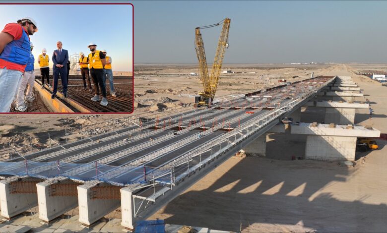 وصلت نسبة إنجاز الطرق و الجسور ضمن مشروع الطريق السريع الرابط بين النفق المغمور وطريق التنمية أحد مشاريع ميناء الفاو الكبير الى 67 % .