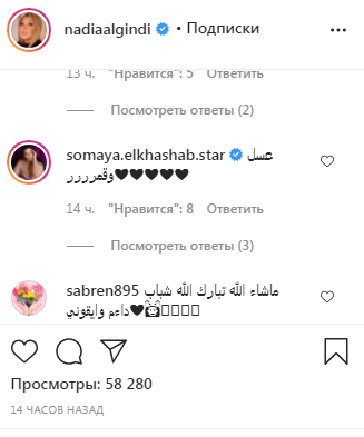 وإنهالت التعليقات على الفنانة المصرية بشكل كبير من النجوم وجمهورها، وكتبت الفنانة سمية الخشاب: “عسل وقمر”