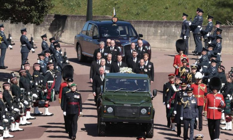 وكان نعش فيليب قد نُقل إلى الكنيسة على سيارة عسكرية خضراء، أشرف هو بنفسه على تهيئتها ليوم جنازته، وسط طلقات المدفعية، وبسبب قيود جائحة فيروس كورونا، اقتصر تشييع الجثمان على حضور عدد محدود من المقرَّبين للعائلة المالكة.