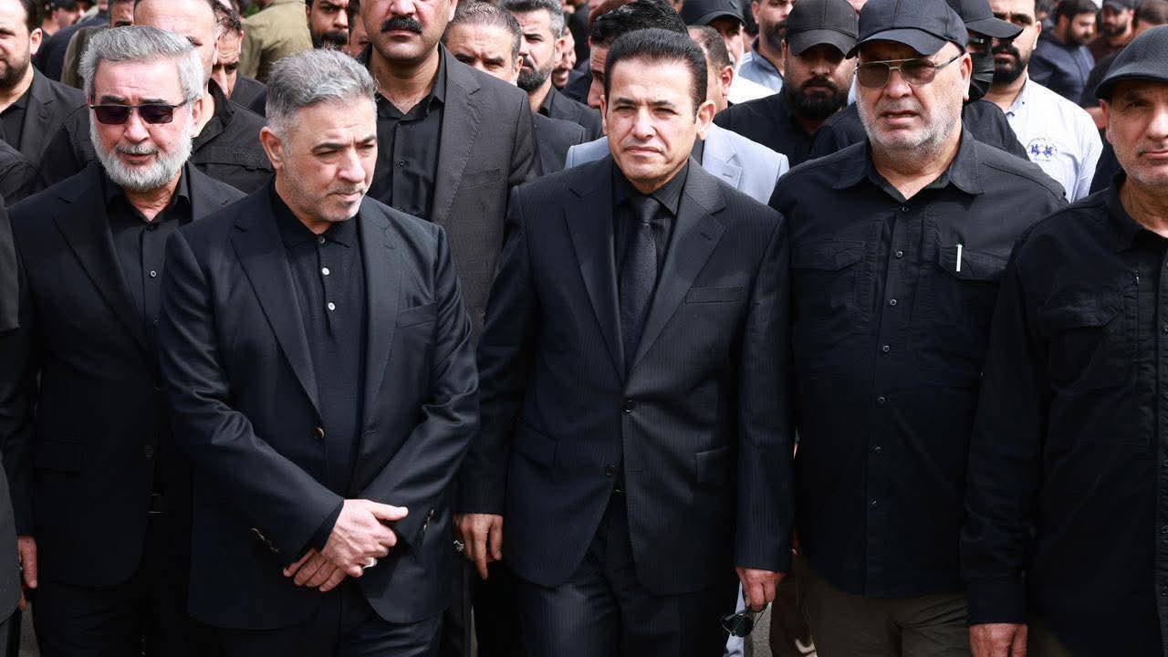 شارك مستشار الامن القومي قاسم الاعرجي اليوم الخميس في مراسم تشييع شهداء الحشد الشعبي اللواء 53 الذين ارتقوا في قضاء تلعفر بمحافظة نينوى اثر القصف الامريكي الذي استهدف مقر اللواء وقرأ الاعرجي سورة الفاتحة ترحما على ارواح الشهداء مشيدا بالتضحيات الكبيرة التي قدموها من اجل الوطن والشعب والمقدسات داعيا الله ان يتغمدهم بواسع رحمته ويلهم ذويهم الصبر والسلوان ويمن على جميع الجرحى بالشفاء العاجل تعبيرا عن الاعتزاز بالدماء التي سالت دفاعا عن سيادة العراق وامنه