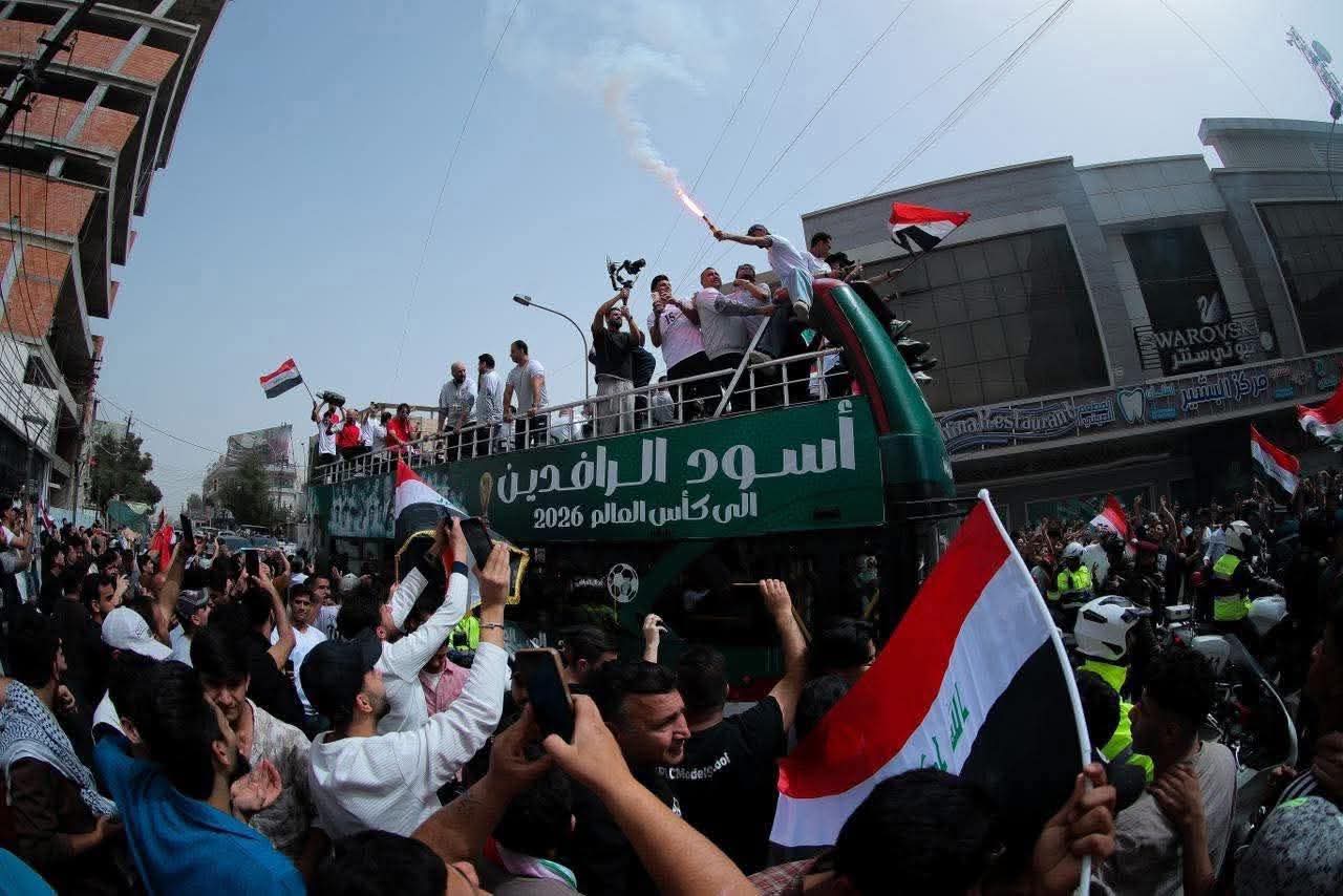 تجولت حافلة المنتخب الوطني العراقي المكشوفة في شوارع العاصمة بغداد وسط حضور آلاف المشجعين الذين احتشدوا للاحتفاء باللاعبين والملاك التدريبي بمناسبة التأهل التاريخي الى نهائيات كاس العالم الفين وستة وعشرين وشهدت شوارع العاصمة احتفالات كبرى واهازيج شعبية تعبيرا عن الفرحة بهذا الانجاز الكروي فيما رافقت الجماهير الحافلة في مسيرتها تعبيرا عن دعمهم وفخرهم باسود الرافدين الذين رفعوا اسم العراق عاليا في المحافل الدولية وتاتي هذه الجولة ضمن مراسم الاستقبال والاحتفاء الشعبي والرسمي بالمنتخب بعد عودته الى ارض الوطن حامل بطاقة التأهل المونديالية