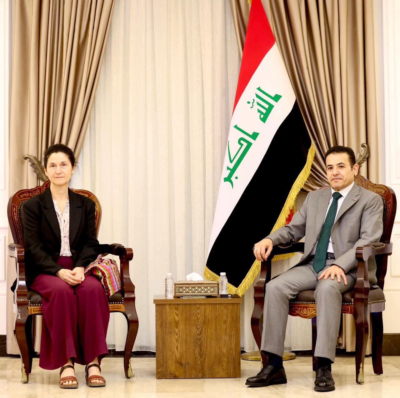 استقبل مستشار الامن القومي قاسم الاعرجي اليوم الاثنين رئيسة بعثة منظمة اطباء بلا حدود في العراق ماريا جيما دومينغيز لبحث افاق التعاون المشترك ودعم المشاريع الانسانية التي تنفذها المنظمة في البلاد