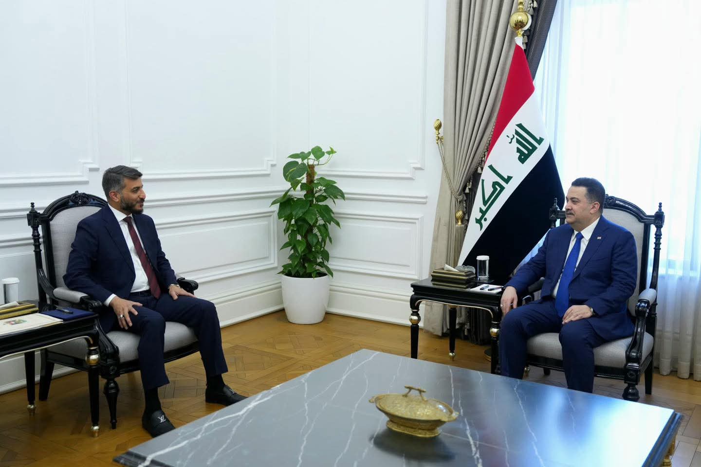 استقبل رئيس مجلس الوزراء السيد محمد شياع السوداني اليوم الاثنين محافظ النجف الاشرف السيد يوسف مكي كناوي وجرى خلال اللقاء بحث المشاريع التي يتم تنفيذها في المحافظة والسعي الحثيث من اجل انجازها خدمة للمواطنين ولخصوصية النجف الاشرف التي يؤمها ملايين الزائرين طيلة ايام السنة واكد سيادته اهمية التكامل في العمل بين الحكومة الاتحادية مع جميع الحكومات المحلية مشددا على ضرورة ان تنسجم المشاريع المنفذة في المحافظات مع المشاريع الكبرى التي وضعتها الحكومة ضمن برامجها التنموية
