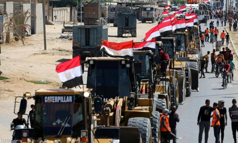 عشرات الآليات المصرية تجتاز معبر رفح للمشاركة بإزالة الركام الذي خلفته الحرب