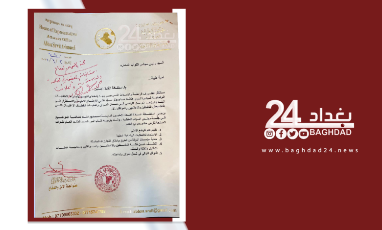 وبحسب الوثيقة المقدمة من قبل صروط لرئاسة المجلس فان “رئيس مجلس النواب محمد الحلبوسي وافق على استضافة القادة الأمنيين في القاعة الدستورية بمبنى البرلمان”.