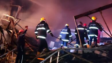 بالصور…انهيار مجمع طبي جراء حريق في ميسان