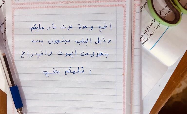 وكشف المصدر ان الضحية كتب رسالة في “دفتر ” داخل “كتاب مادة التربية الاسلامية” يعتقد انها طالبة في المرحلة الاعدادية قبل عمليةالانتحار
