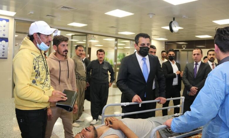 تفقد وزير صحة اقليم كوردستان العراق الدكتور سامان البرزنجي والدكتور صباح هورامي مديرعام صحة محافظة السليمانية والدكتور معاف عبدالله مدير عام ديوان الوزارة , تفقدوا جرحى انفجار منظومة الغاز في احدى كافتريات محافظة السليمانية والذين تم نقلهم الى مستشفى شار في المحافظة .