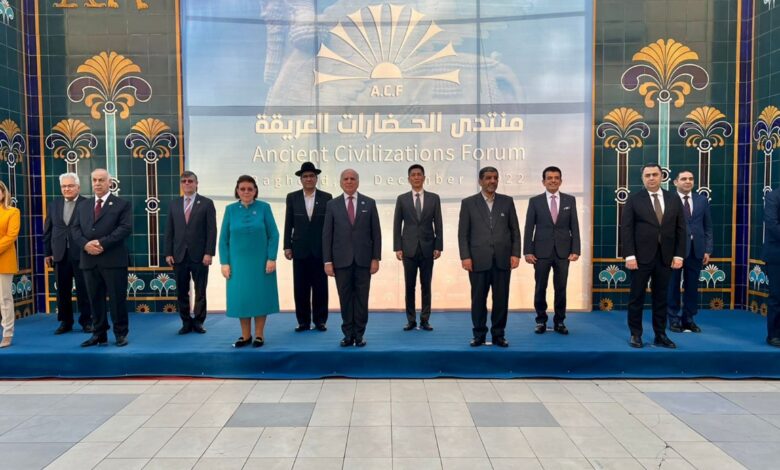 وقال وزير الخارجية خلال حضوره في منتدى الحضارات العريقة بنسخته السادسة الذي انطلقت أعماله اليوم في العاصمة بغداد بمشاركة عدد من الدول العربية والأجنبية إضافة إلى ممثل للأمين العام للأمم المتحدة, ان هذا المنتدى يُعد نهجًا دبلوماسيًا لتعزيز الشراكات الاستراتيجية والتنسيق المستدام لدعم الجهود العالمية لمواجهة التحديات العالمية في مختلف المجالات والمساهمة لتحقيق التنمية المستدامة.