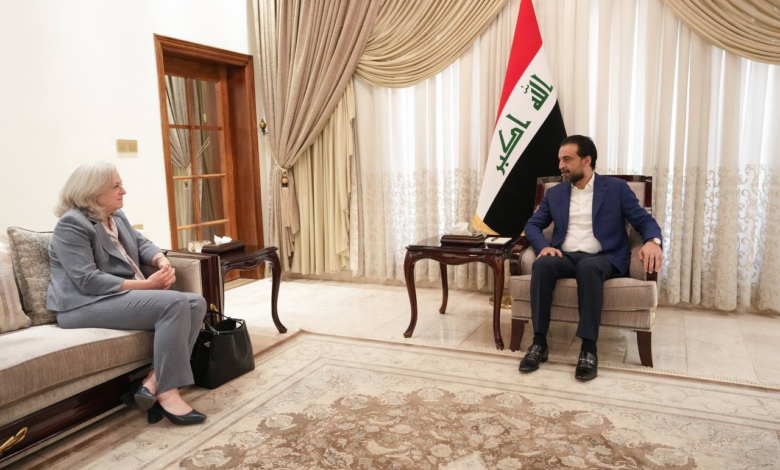 وذكر مكتب رئيس البرلمان العراقي في بيان تلقت بغداد24 نسخة منه, ان اللقاء بحث “تعزيز التعاون والشراكة القائمة بين البلدين، ودعم العراق بمختلف المجالات، كما ناقش تطورات الأوضاع السياسية في البلاد، وعدداً من المواضيع ذات الاهتمام المشترك”.