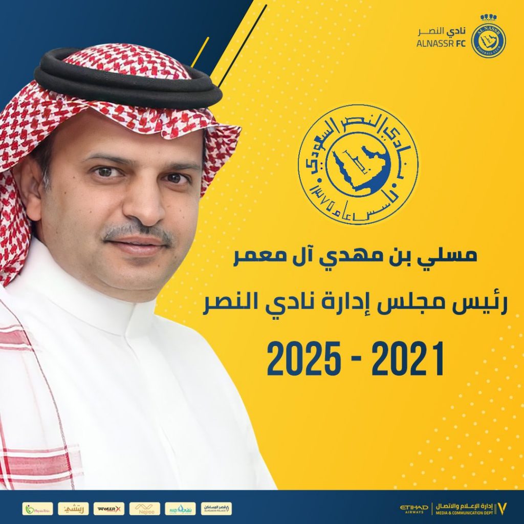 رسمياً.. مسلي آل معمر رئيسا لنادي النصر السعودي