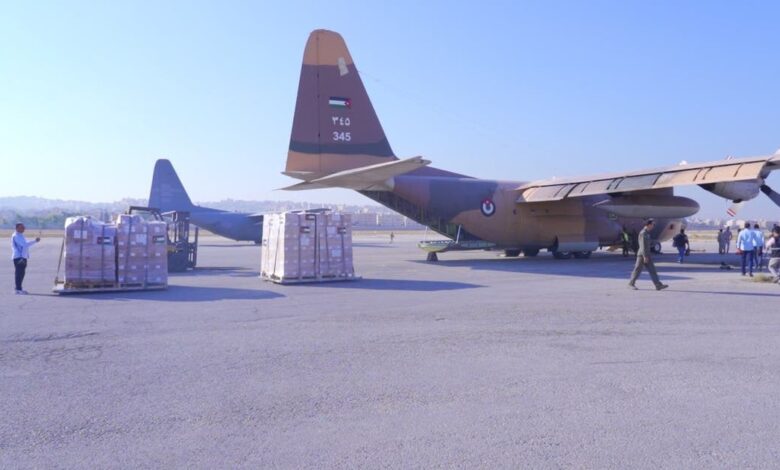 وقالت الهيئة: إن الطائرة التابعة لسلاح الجو الملكي انطلقت من مطار ماركا العسكري في عمّان، حاملة مواد طبية وأدوية.