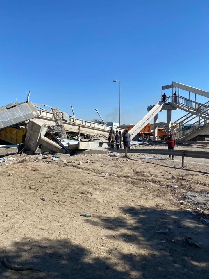 أفاد مصدر أمني، اليوم الإثنين 14 شباط 2022، بأنهيار جسر للمشاة شمالي بغداد بعد اصطدام عجلة حمل كبيرة به فيما أوضحت مديرية المرور أن الحادث أدى لقطع طريق حيوي مهم.