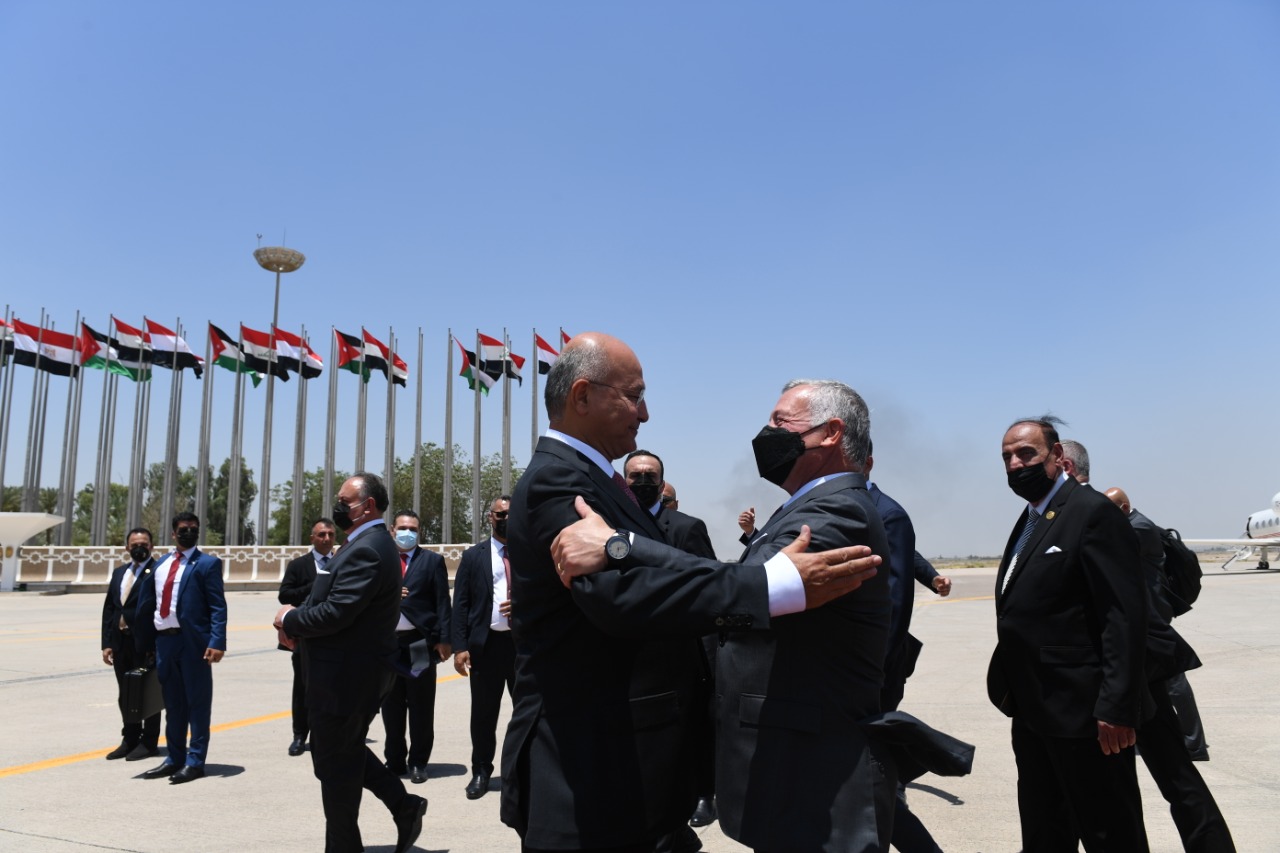 استقبل السيد رئيس الجمهورية الدكتور برهم صالح، اليوم الأحد 27 حزيران 2021 في مطار بغداد، جلالة الملك عبد الله الثاني، عاهل المملكة الأردنية الهاشمية، حيث جرت مراسم الاستقبال.
