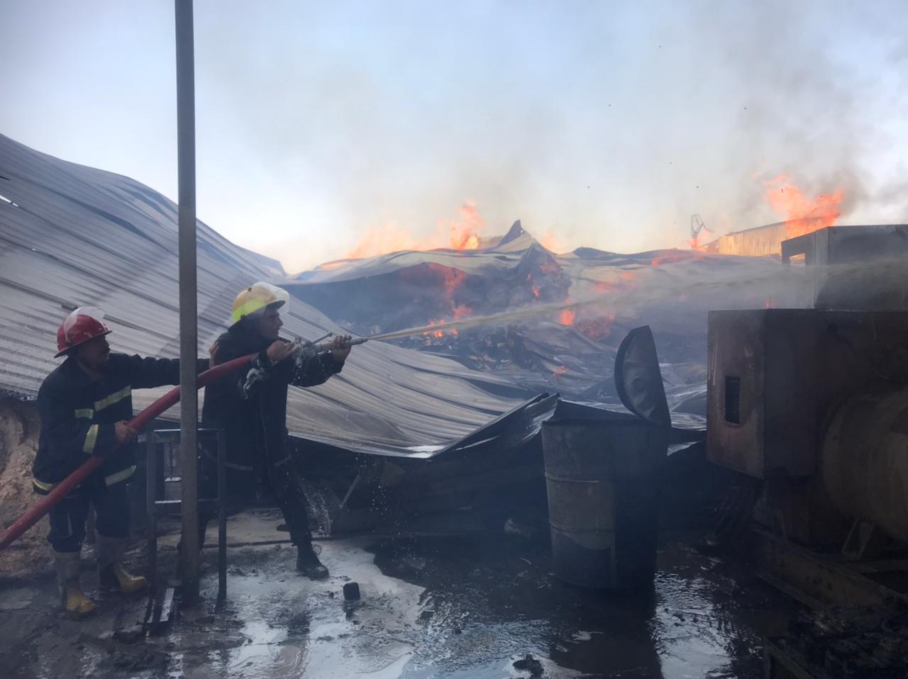 الدفاع المدني يستنفر لإخماد حريق هائل اندلع داخل معمل وخزان وقود شمال بغداد