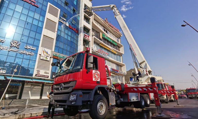 سيطرت فرق الدفاع المدني اليوم الاثنين “2 اب 2021 ” على حادث حريق اندلع في الطابق الثامن داخل بناية تجارية متخذة كـ محلات تجارية لبيع مواد ومستحضرات التجميل ومراكز تجميل ايضا في منطقة المنصور قرب تقاطع الرواد وسط بغداد بأشراف ميداني مباشر من قبل مدير عام الدفاع المدني اللواء كاظم سلمان بوهان .